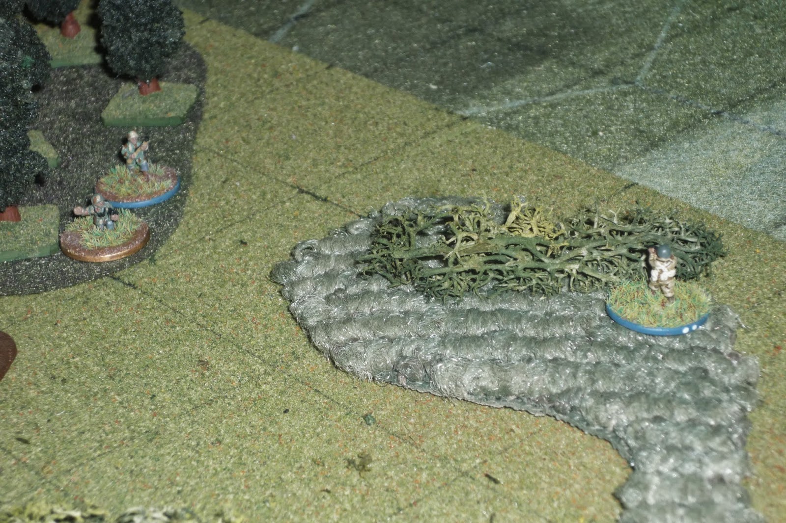 This is followed by the German Sgt's buddy moving up to Cahill's recently abandoned position and taking a shot at Cpl Everson, still in the woods.  Everson goes down like a sack of potatoes...  The Americans now have ZERO men on the right flank.