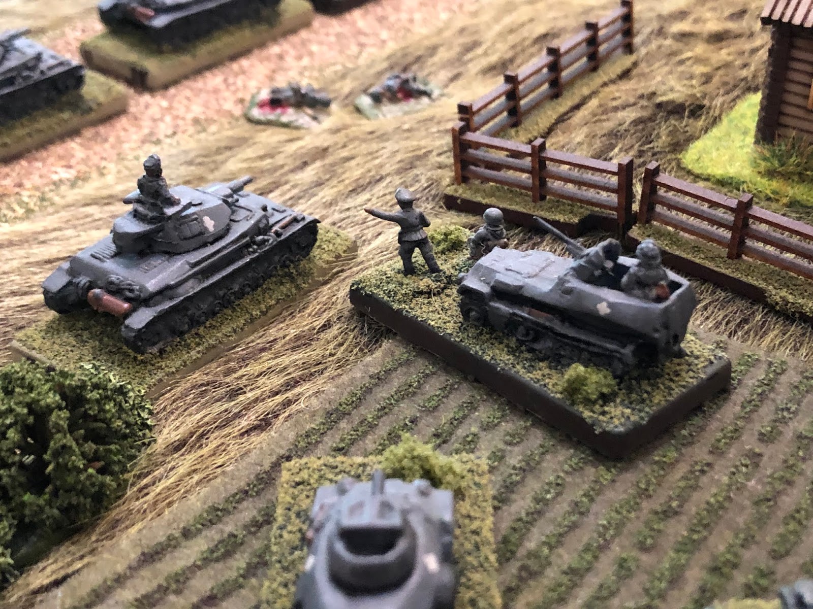 Kampfgruppe Klink is hanging on by a thread, with nothing left on the battlefield to stop the two French tanks, but an unlikely hero is on the way, and is currently marshalling forces (in the form of the remaining Panzer Platoon and the Panzerjaeger Platoon) to strike back at the French.