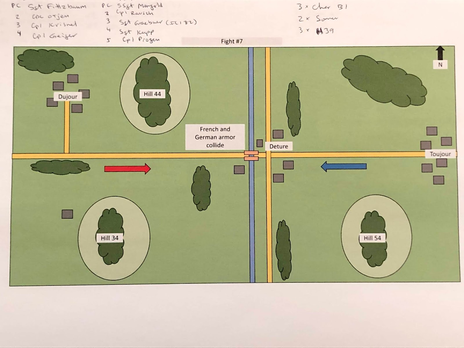 Sgt Graebner duels with a Char B1 in Deture (top center right) as SSgt Mangold and Cpl Raush push their tanks towards the bridge (far right).