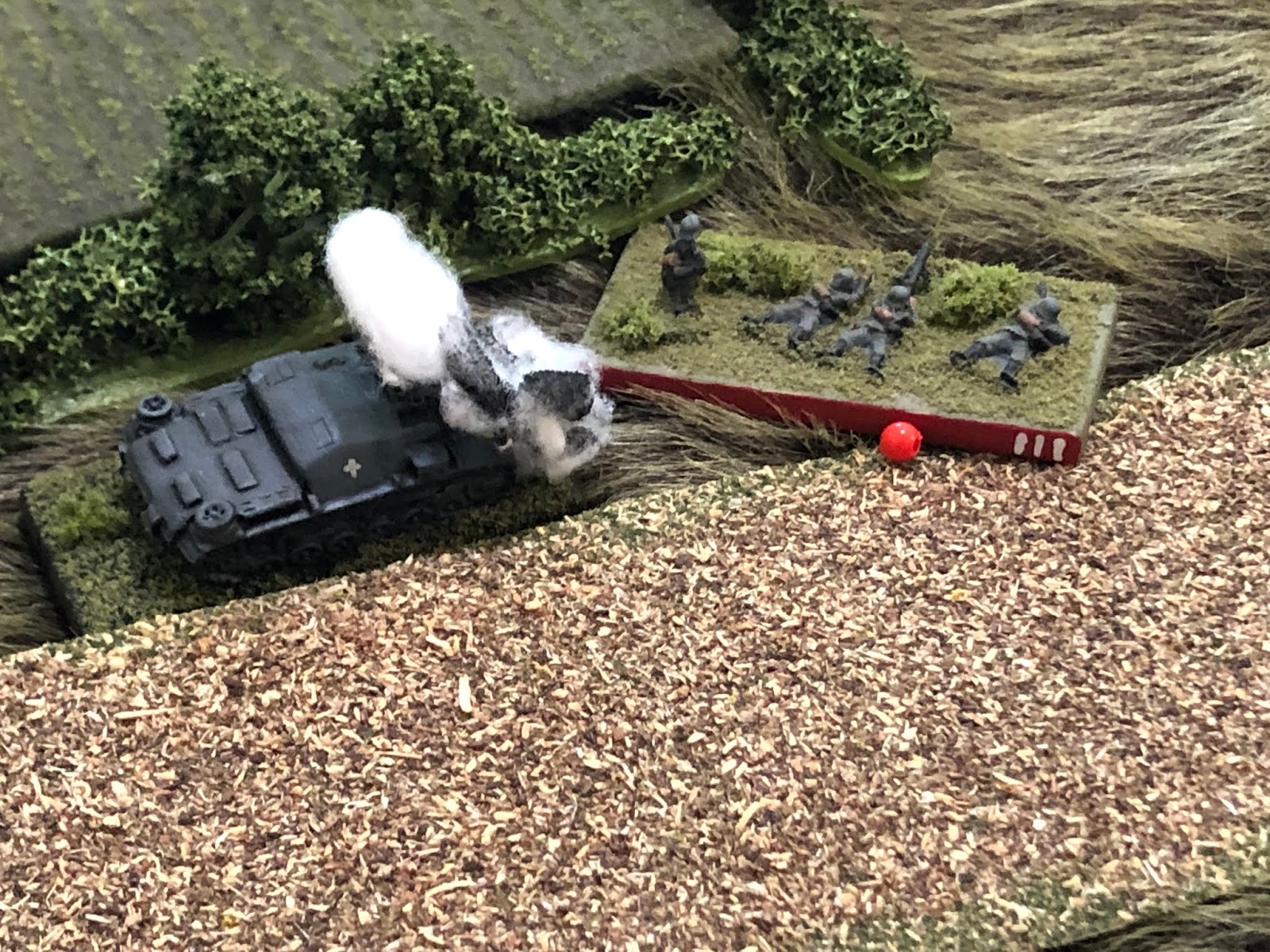 The first fight saw Colonel Klink lead the 1st Grenadier Platoon, supported by Stugs, in the attack on Dujours.  Repulsed, they were reinforced by the 4th Grenadier Platoon and drove the French force back onto Hill 44.