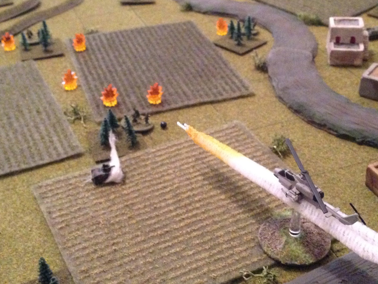 The Cobra rolls in to make a rocket run.  To see how the fight turned out, please check the blog at: