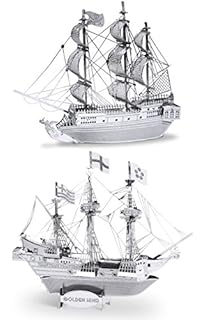 Models made from metallic sheets around $9 each. Top is the Black Pearl, below is the Golden Hind. Else where was the Queen Anne's Revenge. Based on the dimensions maybe be somewhere in the n scale range. The pirate lads over in another thread maybe interested!