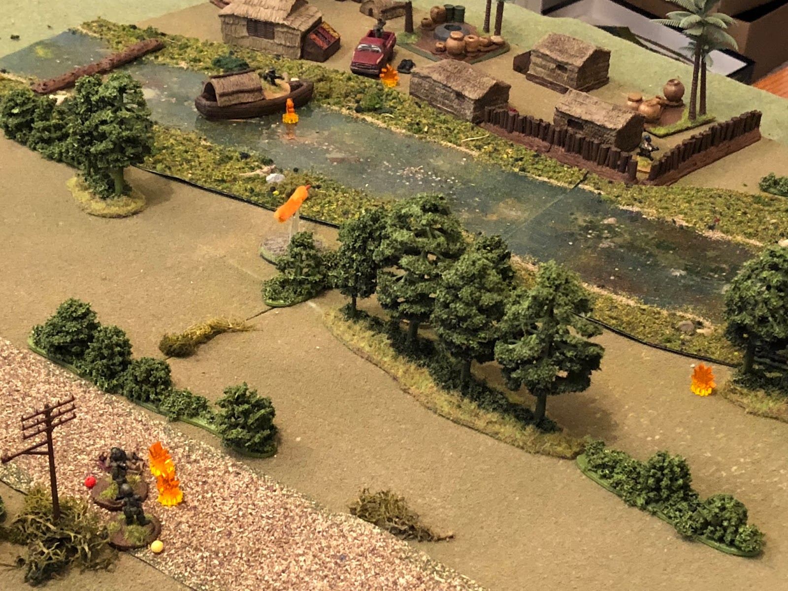 Cubans pinned down in the bottom left hand corner struggle to return fire on the insurgent positions in the village.  To see how the fight went, please check the blog at: