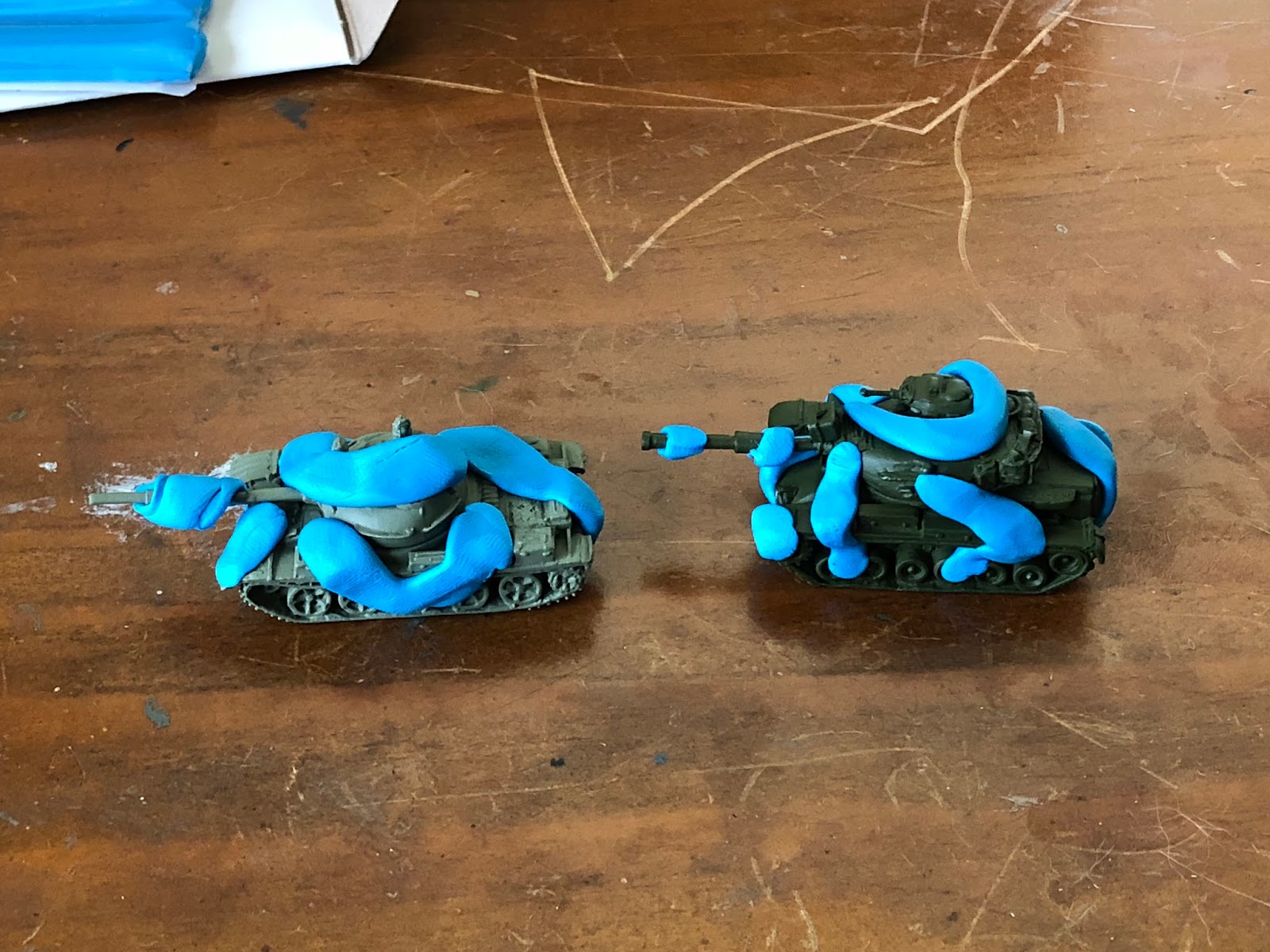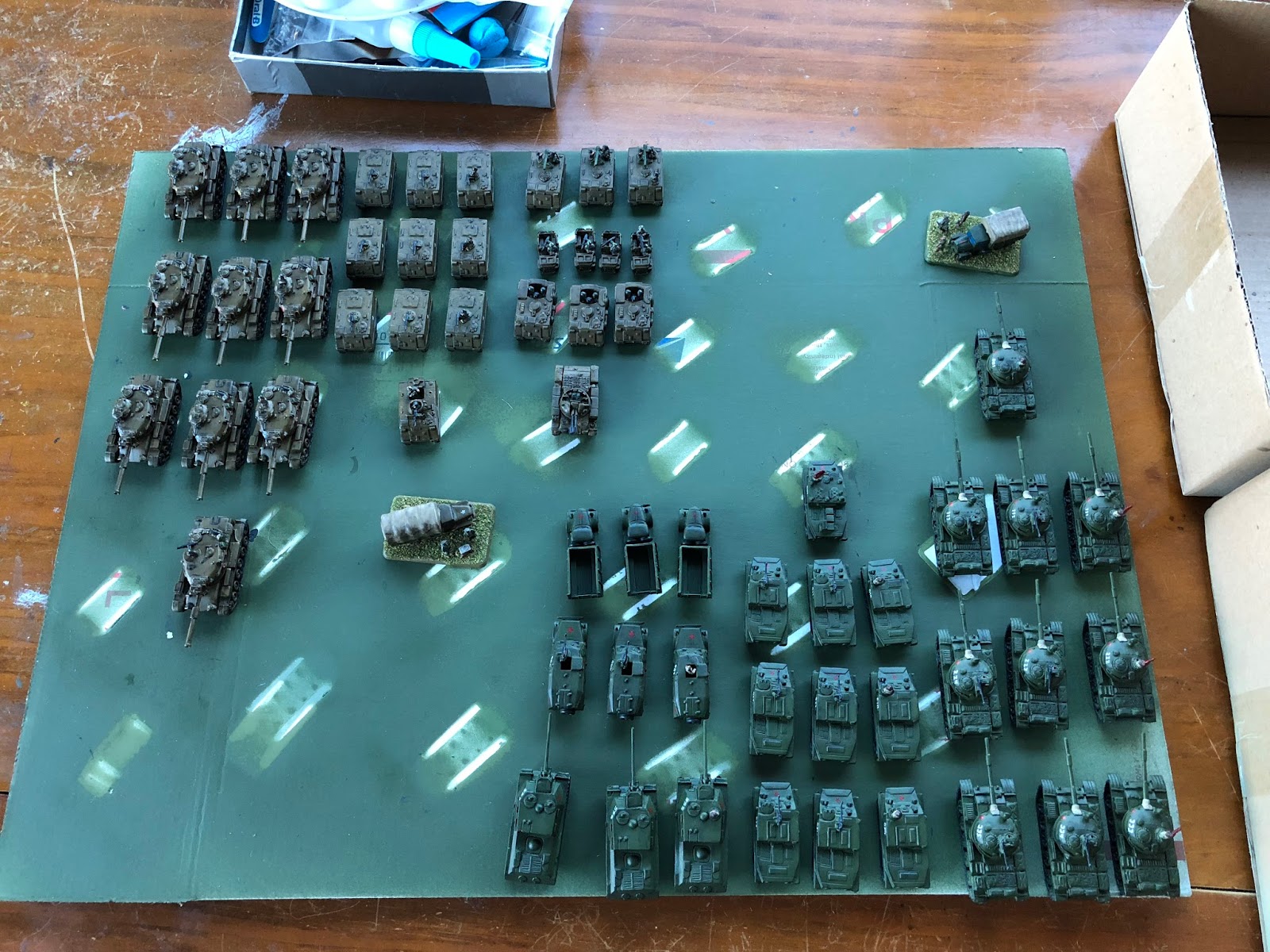I tend to have hand painted camo on tanks - but I don't think I've ever done this many in one go!