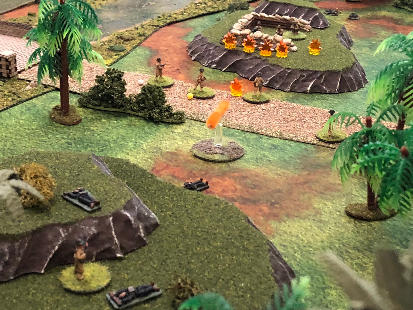 Sgt Carlson and the wounded are at bottom left, Cpl White's team is at bottom right, the bridge is off camera to right, and the encroaching Japanese are at top left.  Will they make it?  To see how it turned out, please check the blog at: