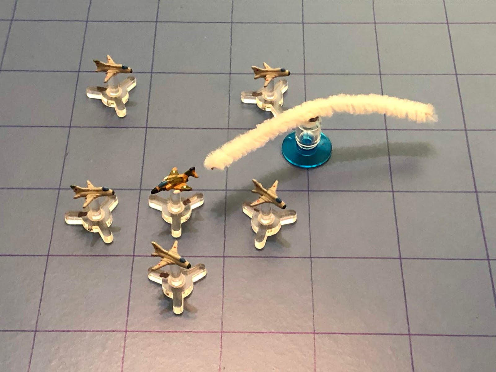 Yesterday afternoon the Communists made a second run, sending a full strike package up against five F-4 Phantoms.  The enemy was again triumphant.  Sure, they lost two MiGs and three bombers, but three bombers got through and destroyed Target #2, then damaged Target #3.  Meanwhile, the Cubans lost two F-4s destroyed and two damaged, though both downed pilots returned safely to base.  Also, Boxcar 08 was awarded the BS/V for knocking down three bombers all by himself.