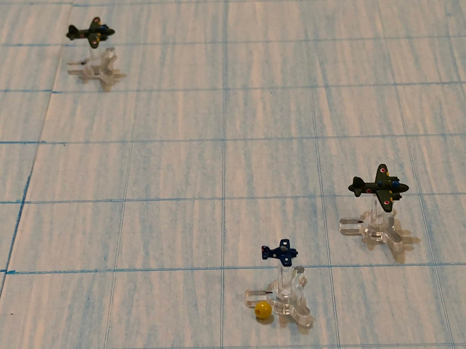 Last run out of the poster board playing surface, thanks for bearing with me!  Three Wildcats climbing to intercept three Helens escorted by two Oscars.