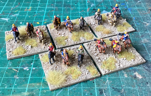 I have started my new Persian army, this will begin as a late period army then morph back to the Early period and probably sideways in to Hoplite Greek eventually. I have only completed some of the cavalry so far;