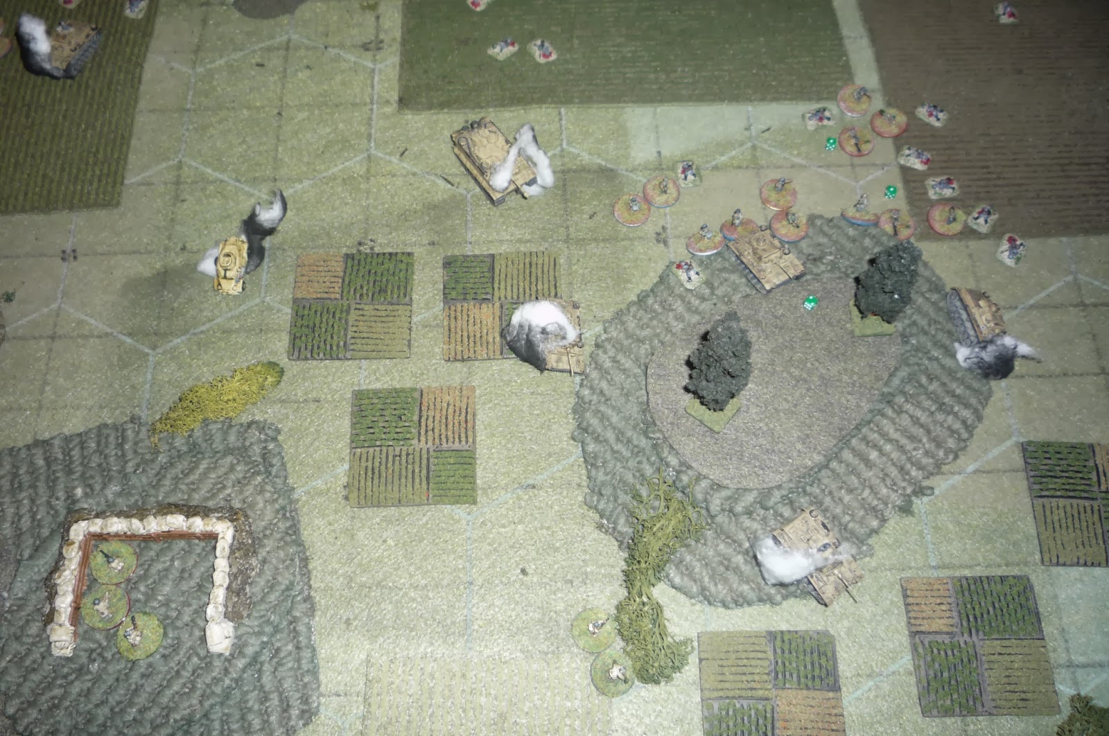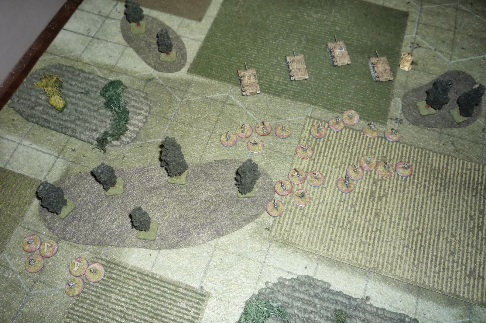 At this point, the Germans have lost three NCOs, two tanks, and a fair few of their infantry.  They decide on an operational pause to pull back, regroup, receive reinforcements, and try again.