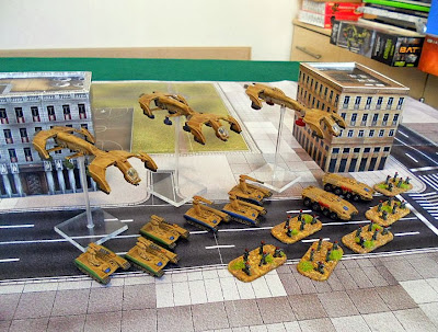 I've finally finished painting the UCM and Scourge armies that came with the 2-player starter set I bought. I've had the colour schemes and test models done for ages but other things have conspired to keep me from finishing them.