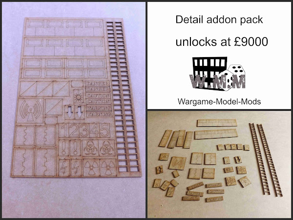 It is a detail pack.This pack includes 6 walls, 2 cut to length ladders and numerous detailed panels. This pack will be free for anyone who has pledged £15 or more. Extra sets can be purchased for £5 each. The power station shows a bunch of them in place. This sprue will add some more character to your buildings.