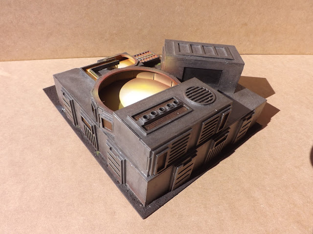 This is my ingot factory, it has been painted by Dan Taylor and he has done an amazing job. It has been painted as i imagined the building when i designed it a year ago. The molten metal stored in the Center of the building and slowly making its way down to the ingot molds.